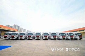 当天,首批100台TIR中置轴侧帘车在上合示范区TIR国际道路运输集结中心正式交付,将进一步提高上合示范区TIR运力水平,助力丝路电商跨境通道建设。据介绍,与传统TIR运输车辆相比,中置轴侧帘车一次可拖挂两个集装箱,容积可增加至130立方米,且该车型的轴位布局相对均衡,能够有效减少车辆在运输过程中的侧倾和摇晃,提高长途运输时的稳定性,切实为企业降本增效。